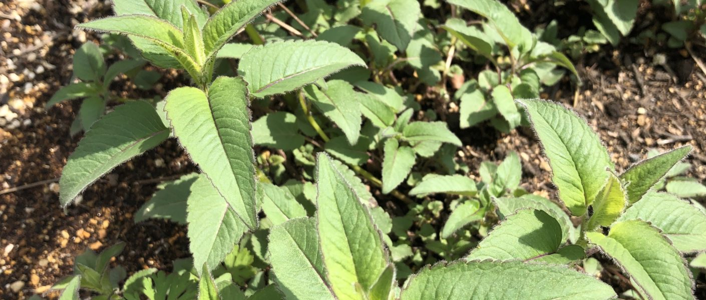 暖かな陽光に照らされてキラキラと輝くハーブたち。なかでも、生命力あふれ元気にぐんぐん成長を見せてくれているのがベルガモットの仲間「ワイルドベルガモット」です。